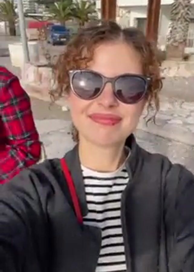 - "A woman with curly hair and sunglasses stands outdoors in front of a building with palm trees" by FM-GgSpJ3, licensed under CC BY 4.0