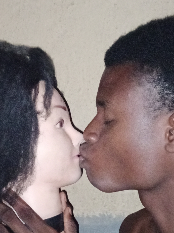 - "The image, captured in Narayi, Nigeria, depicts a close-up, profile view of a dark-skinned male kissing a mannequin head" by FM-IKO9B3, licensed under CC BY 4.0