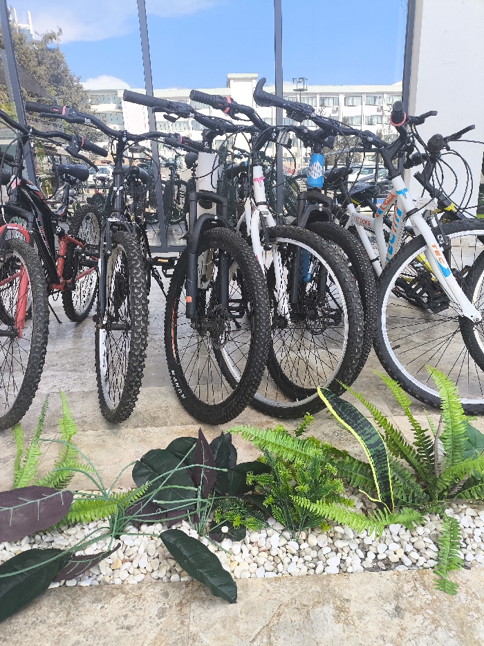 - "The image presents a ground-level view of a row of approximately ten mountain or hybrid bicycles parked outdoors in Kızılbaş, Northern Cyprus / Cyprus" by FM-QZ3z23, licensed under CC BY 4.0