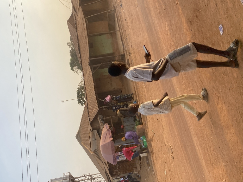 - "Two young boys are depicted on a reddish-brown dirt road, one holding a cell phone" by FM-upDEV2, licensed under CC BY 4.0