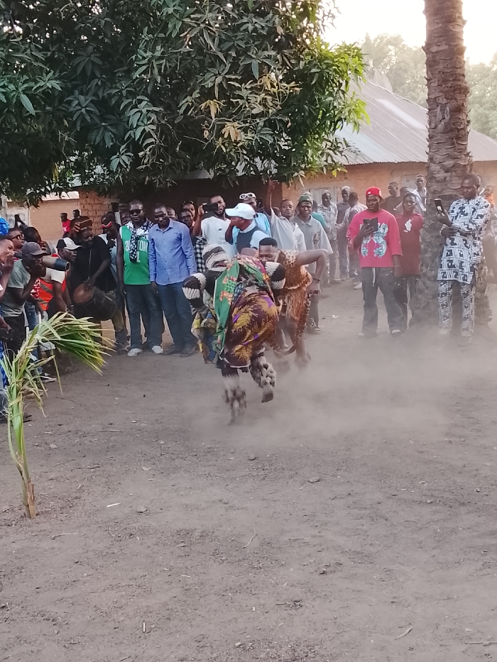 The image portrays an outdoor gathering in Tabu, Nigeria