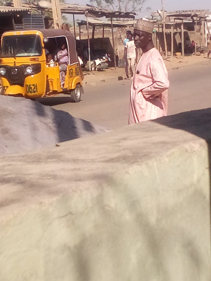 An outdoor scene in Tudun Murtala, Nigeria, depicts a street with visible pedestrian and vehicular presence under bright sunlight