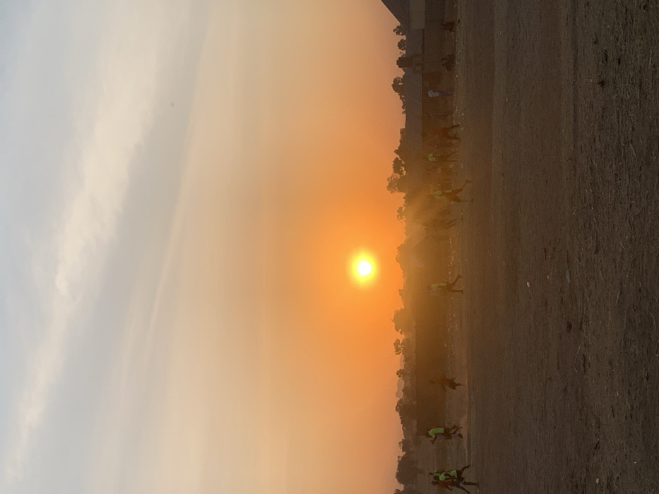 - "The image depicts an outdoor scene in Nata-Ala, Nigeria, during sunset or sunrise, characterized by an intensely bright, low-hanging sun on the left-center horizon, casting a strong orange-yellow glow across the lower two-thirds of the sky" by FM-eD8PP2, licensed under CC BY 4.0