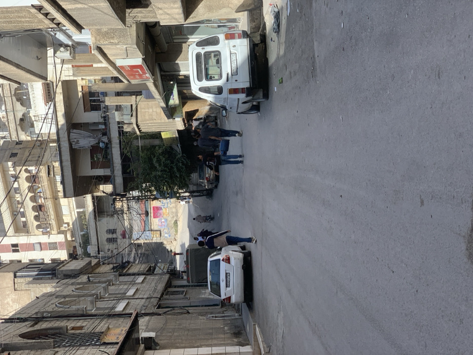 The image displays a sloped, paved street within an urban environment in Ma'raba, Syria