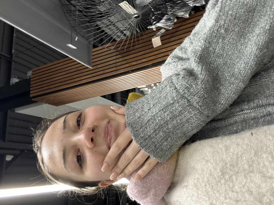 A female individual is depicted in a selfie-style photograph taken indoors in the city of Oberhausbergen, France