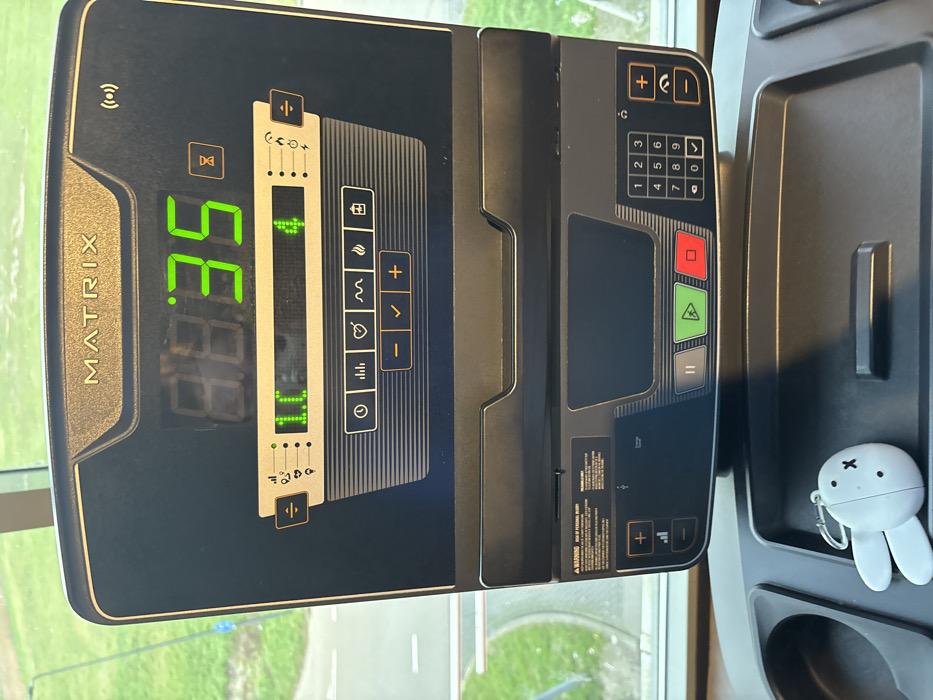 - "The image presents a close-up, eye-level view of a black and grey MATRIX brand treadmill console, positioned indoors overlooking an outdoor environment through a large window" by FM-y2Dyl1, licensed under CC BY 4.0