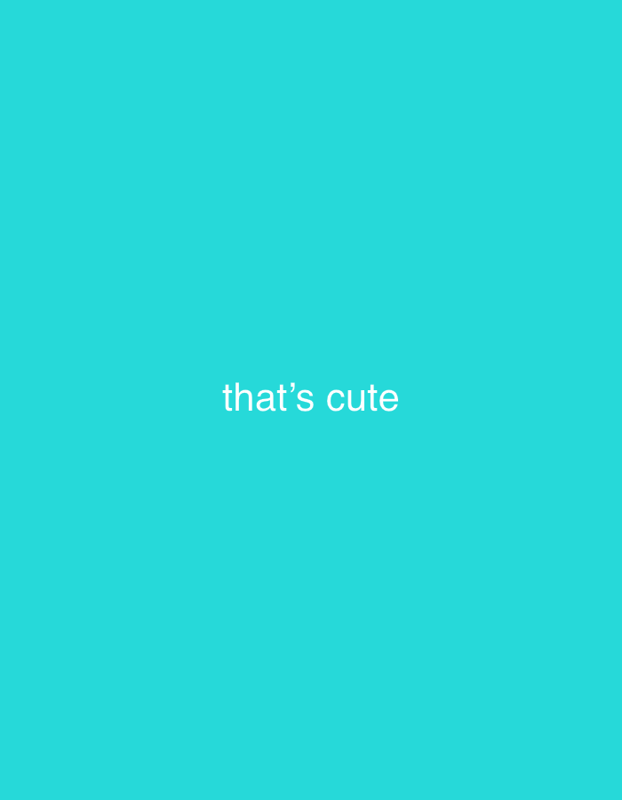 The image displays a solid teal background. Centered horizontally, the white, sans-serif text "that's cute" is present. No individuals, distinct subjects, specific objects, actions, or interactions are depicted within the frame. The visual content provides no discernible environmental features or geographical indicators to determine a location, including Ban Bang Faep, Thailand.