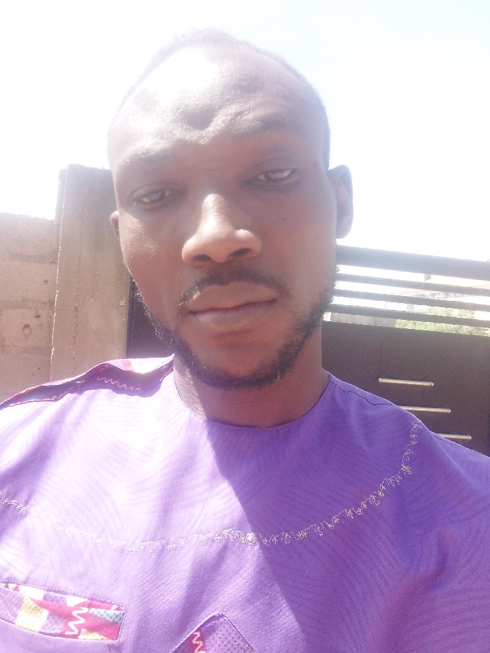 An adult male is depicted in a close-up outdoor portrait, located in Sabon Tasha, Nigeria