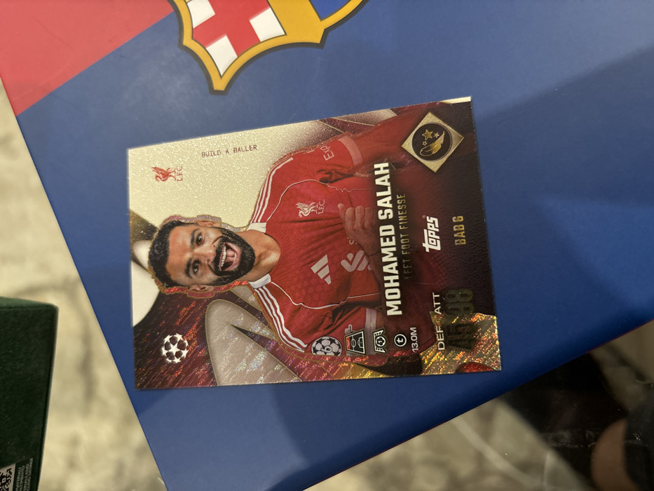 - "A rectangular, vertically oriented trading card featuring footballer Mohamed Salah is prominently displayed" by FM-8sWch2, licensed under CC BY 4.0