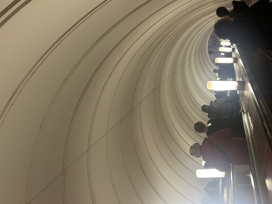 - "The image displays a deep, arched escalator tunnel within the Moscow Metro system in Moscow, Russia" by FM-OecyI3, licensed under CC BY 4.0