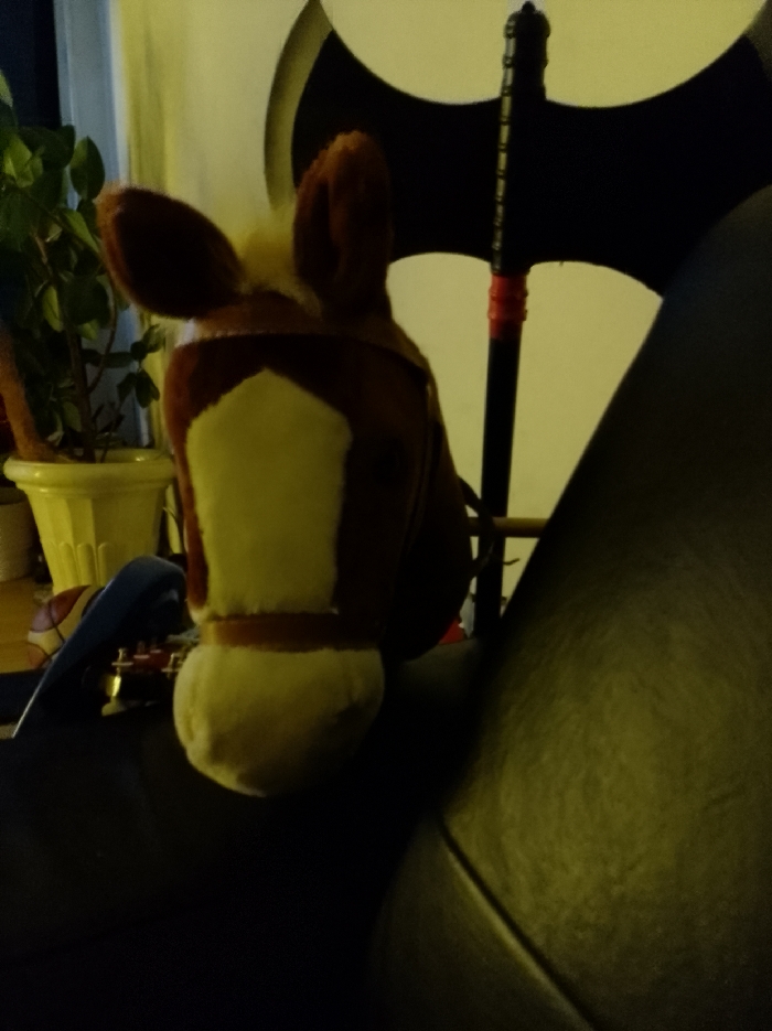 - "A stuffed horse head sits on a black surface" by FM-5n8Vg2, licensed under CC BY 4.0