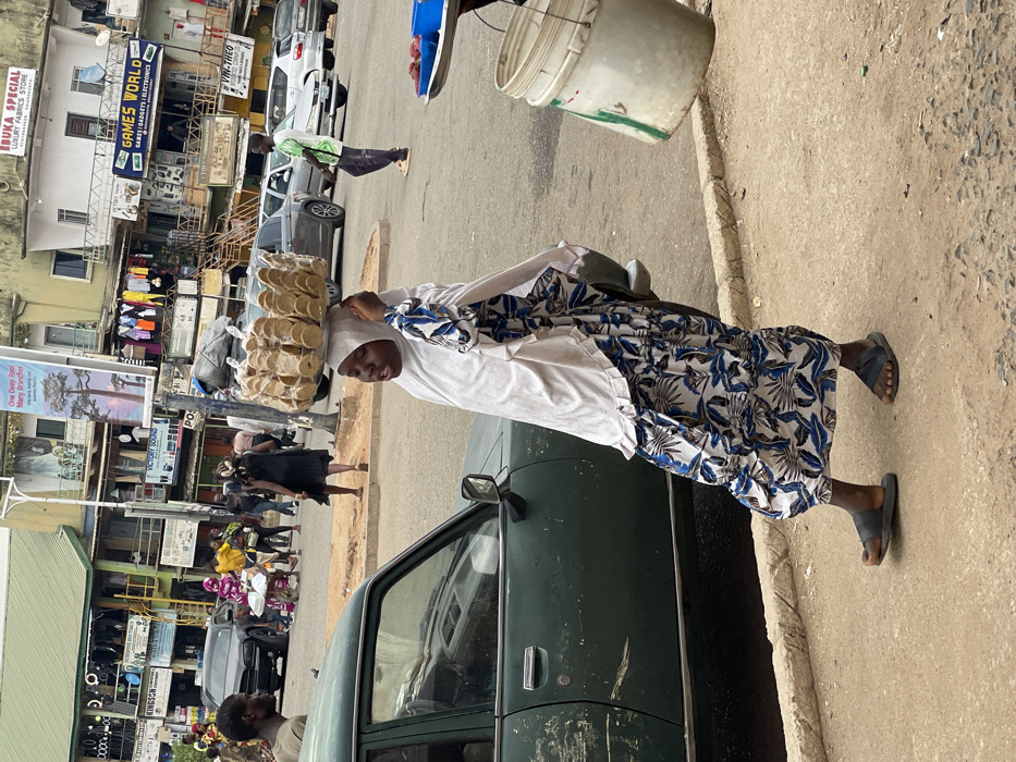 The image depicts a bustling street scene in a commercial area of Jos, Nigeria