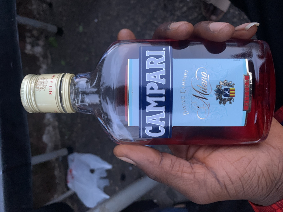 - "A hand holds a bottle of Campari liqueur" by FM-BqndE3, licensed under CC BY 4.0