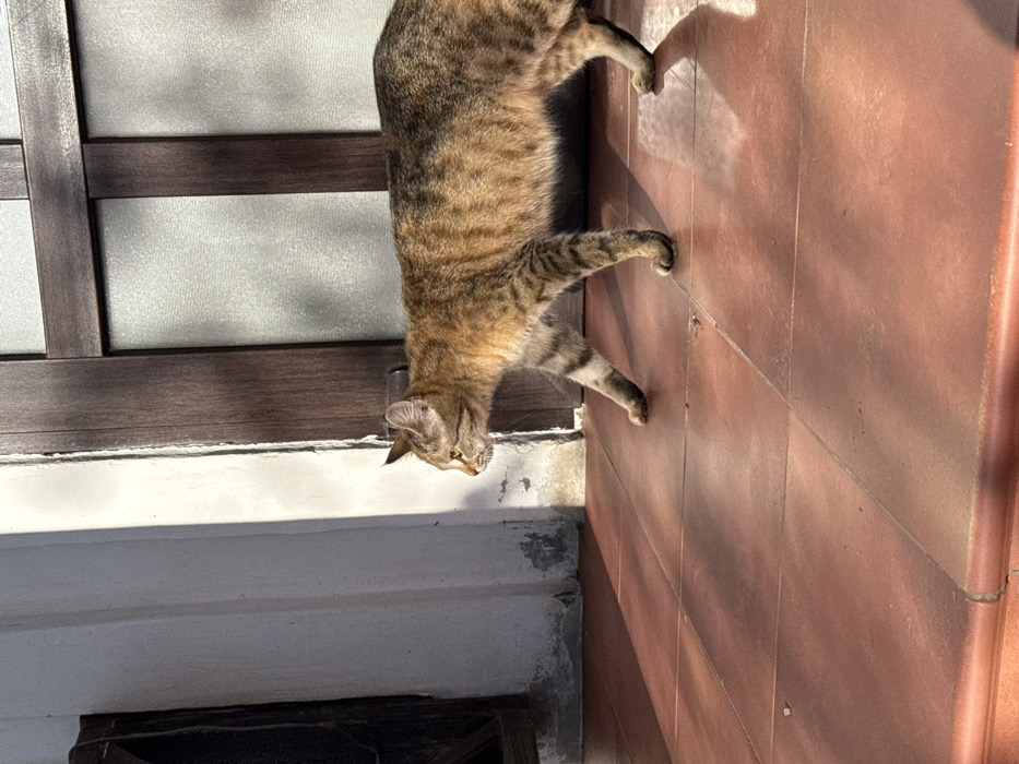 - "A domestic cat, exhibiting a tabby coat pattern with brown, orange, and black stripes, is depicted walking from left to right across a tiled surface" by FM-RJWfF2, licensed under CC BY 4.0