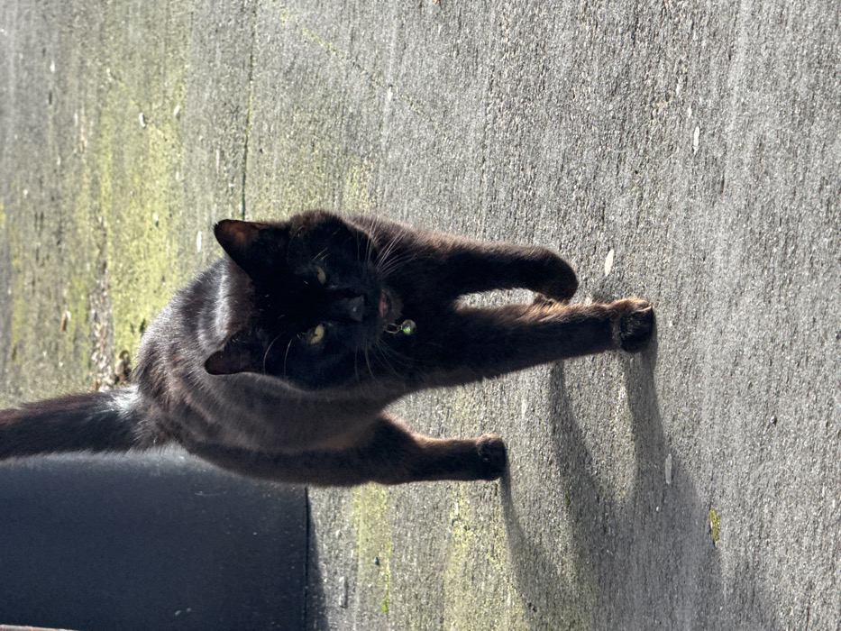 - "A black domestic short-haired cat is depicted walking directly towards the viewer on an outdoor, grey asphalt or concrete surface in the city of Preston, United Kingdom" by FM-ZFFKq1, licensed under CC BY 4.0