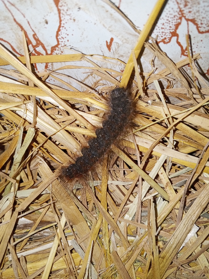- "A brown, furry caterpillar crawls across scattered, dry straw" by FM-leD7T2, licensed under CC BY 4.0