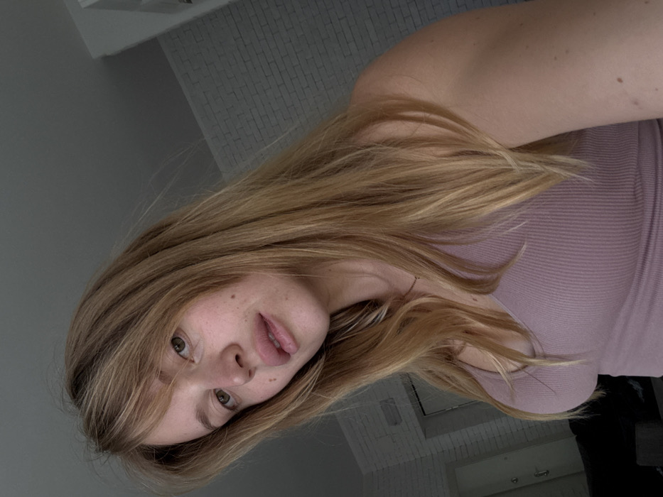 - "The image displays a fair-skinned female with long, light blonde hair and bangs, wearing a light purple ribbed tank top and a thin gold-colored necklace" by FM-yjK1X2, licensed under CC BY 4.0