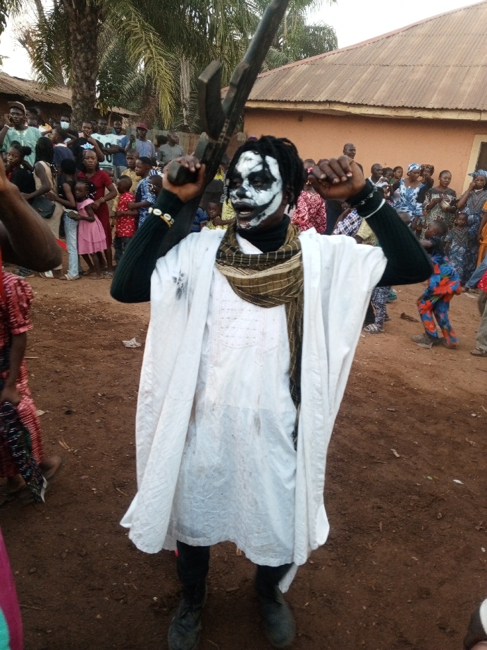 - "An individual with dark dreadlocks and distinctive white and black face paint, resembling a skull or clown, stands centrally in an unpaved, reddish-brown dirt area in Akwanga, Nigeria" by FM-SltDp1, licensed under CC BY 4.0