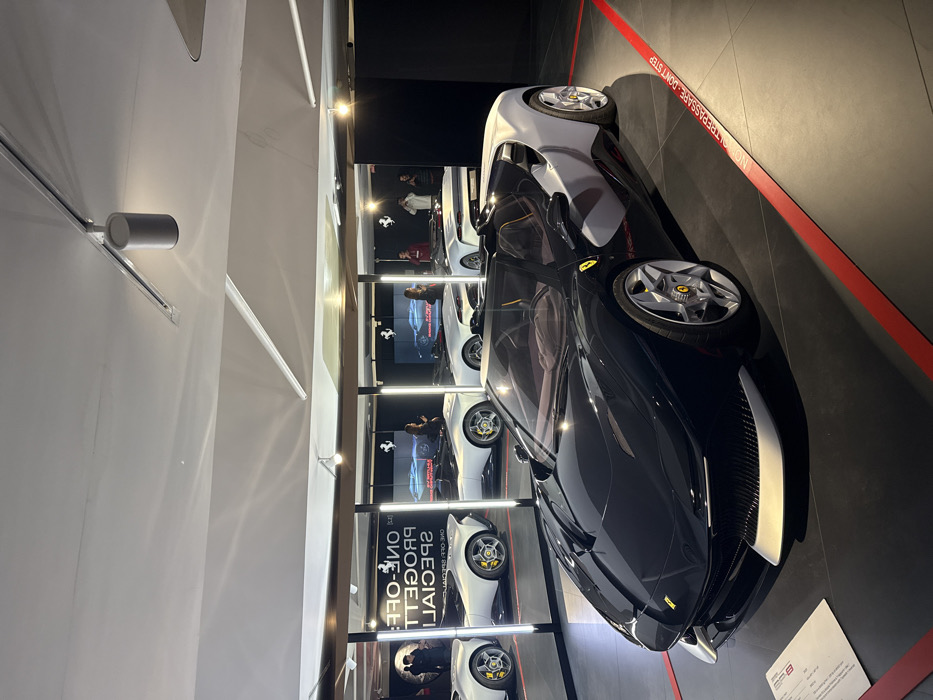 - "The image displays the interior of a modern automotive exhibition space, identified as the Ferrari Museum in Maranello, Italy" by FM-UaKXZ2, licensed under CC BY 4.0