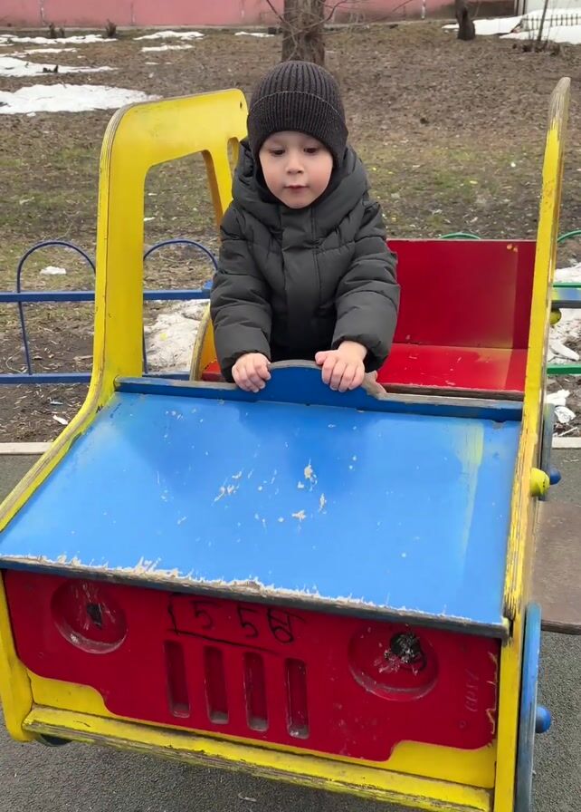 - "A toddler in a black beanie and winter coat is sitting in a spring rider shaped like a car" by FM-Ju5AS2, licensed under CC BY 4.0