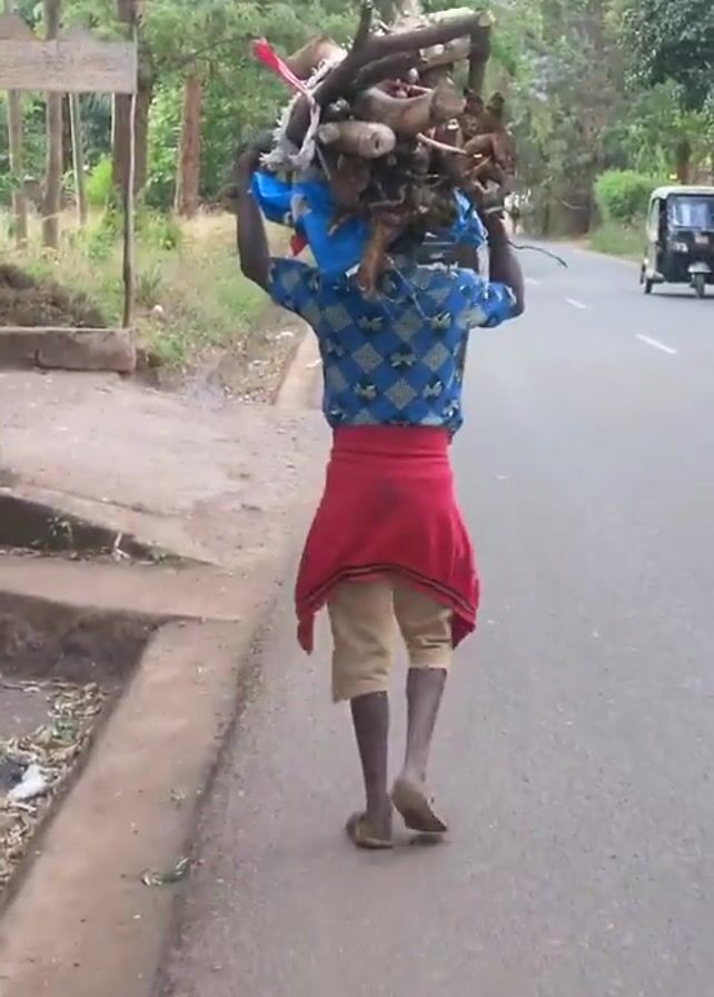 - "A person walks away from the camera, carrying a bundle of wood on their head" by FM-QrecA3, licensed under CC BY 4.0