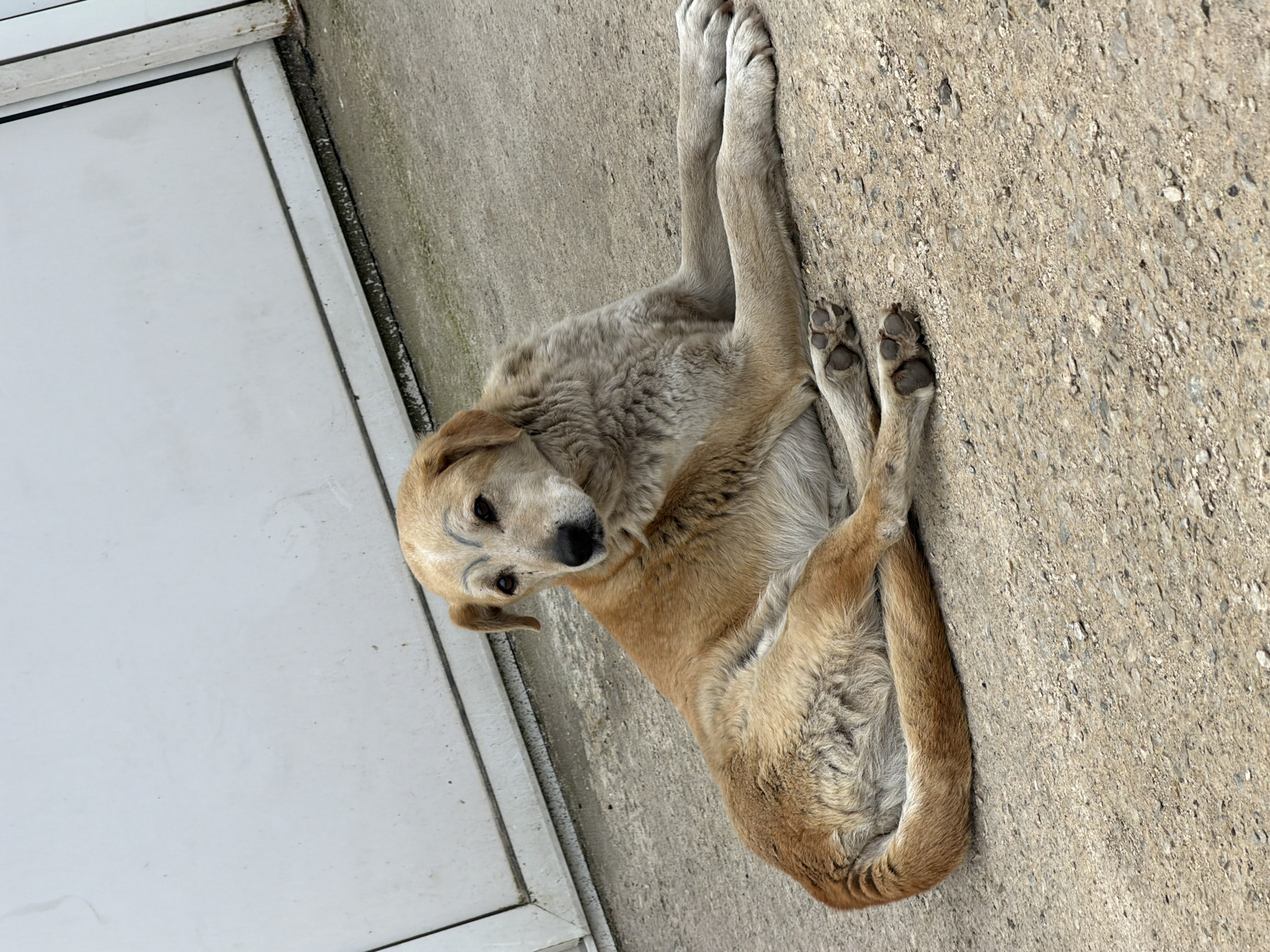 - "An adult dog is depicted lying on a light grey concrete or asphalt surface in Kavarna, Bulgaria" by FM-yXMrL2, licensed under CC BY 4.0