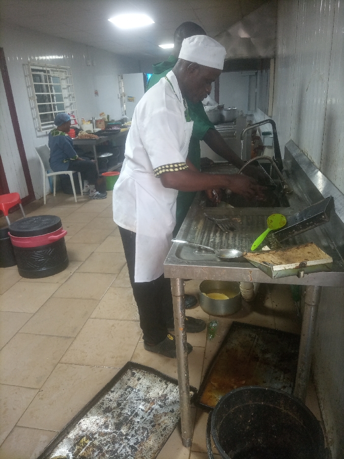 The image depicts an active commercial kitchen environment in the city of Opete, Nigeria