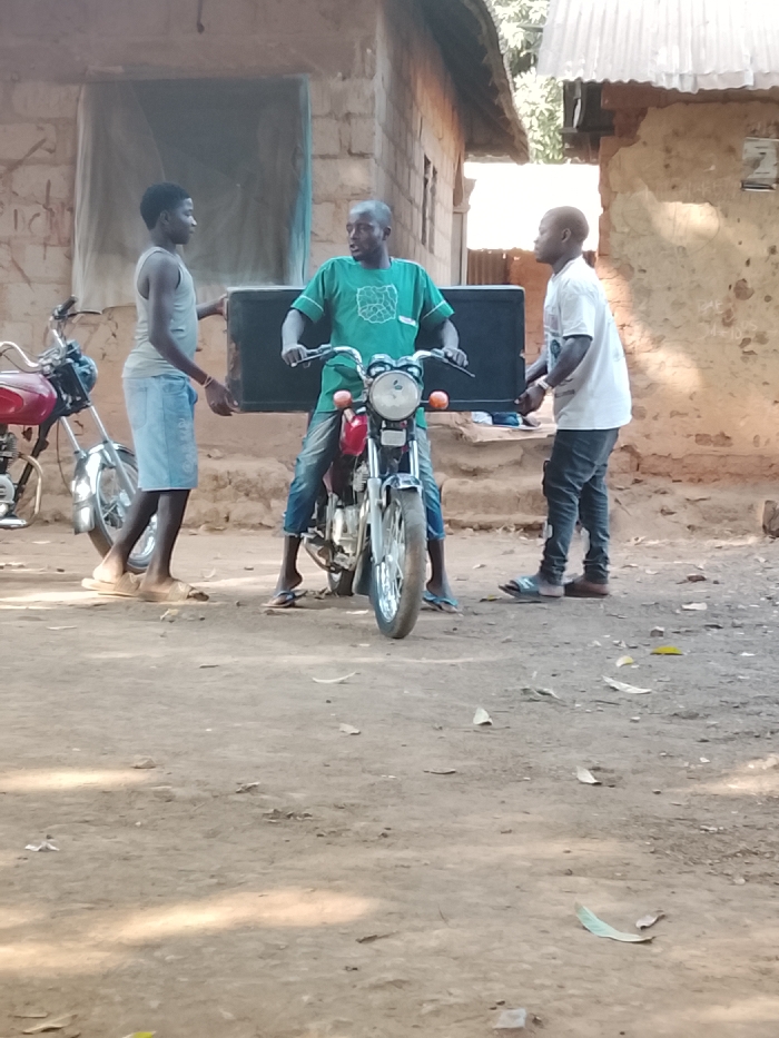 - "The image captures an outdoor scene in Akwanga, Nigeria, featuring three males engaged in transporting a large object with a motorcycle" by FM-nIPOg2, licensed under CC BY 4.0