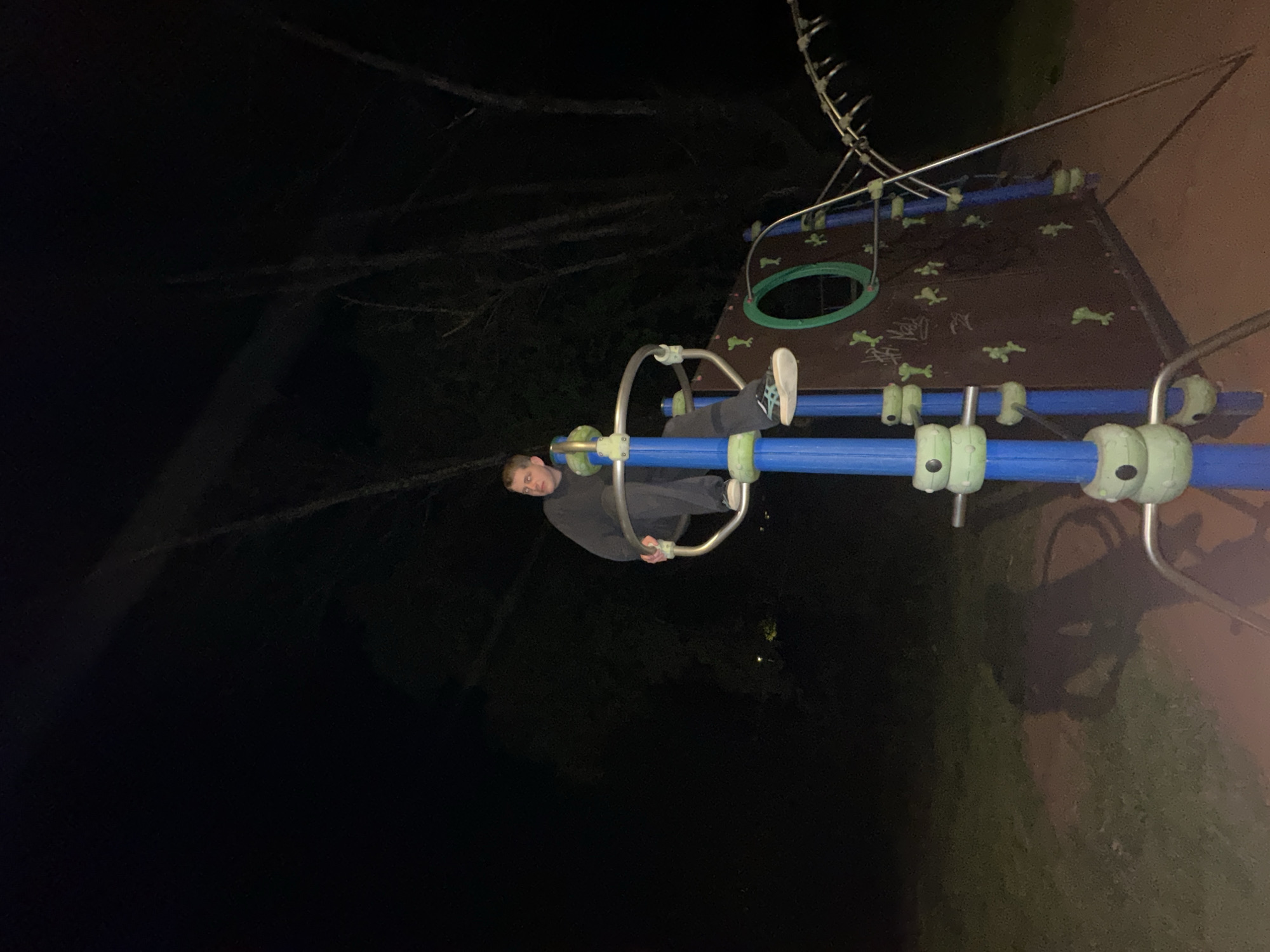 - "A nighttime photograph depicts a single male subject positioned on playground equipment within a park in Guimarães, Portugal" by FM-izaur1, licensed under CC BY 4.0