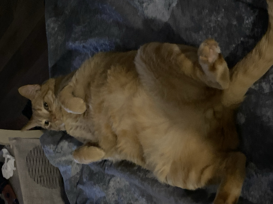 - "An orange tabby cat is depicted lying on its back, occupying the majority of the frame, in an indoor setting within Балаклавский округ, Ukraine" by FM-uK62y1, licensed under CC BY 4.0