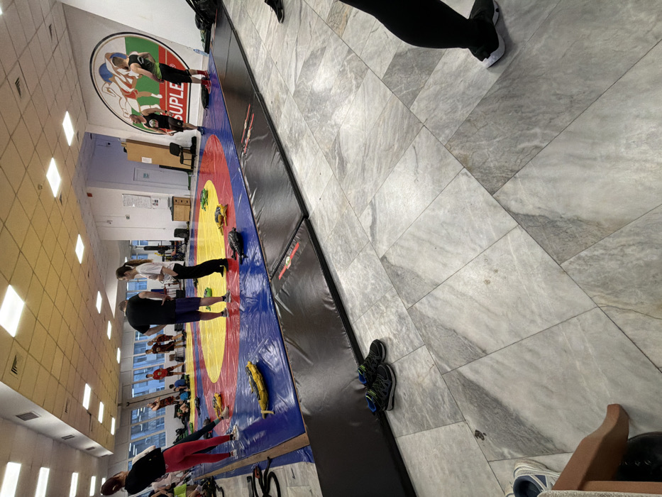 The image depicts an indoor wrestling facility located in Pomorie, Bulgaria