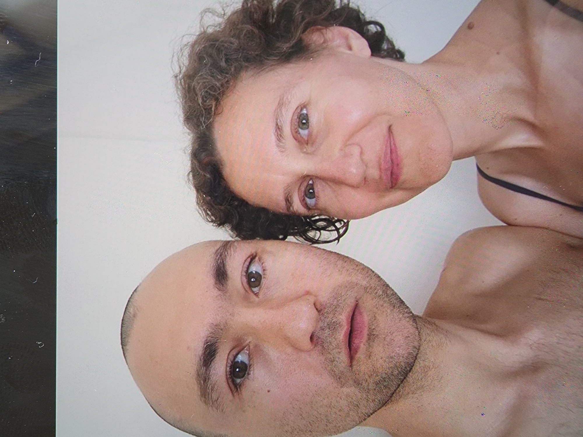 A selfie shows a bald man with facial hair and a woman with curly hair