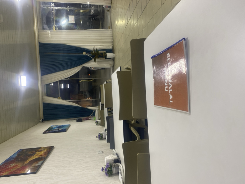 This forensic description details the interior of an unoccupied restaurant or cafe in Galaosiyo, Uzbekistan, observed at night