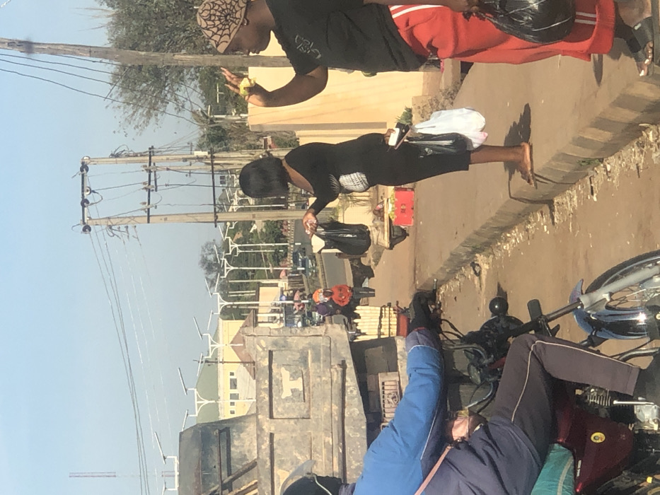 The image captures a sunlit street scene in Gura Top, Nigeria