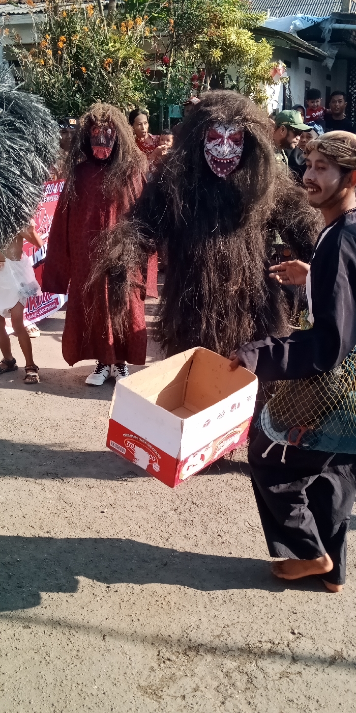 This image captures a daylight scene of a cultural procession or carnival in Ciherang, Indonesia