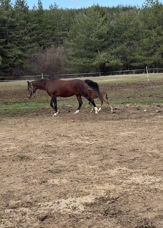 - "brown mare with a foal walking across a muddy paddock" by FM-lXJx72, licensed under CC BY 4.0