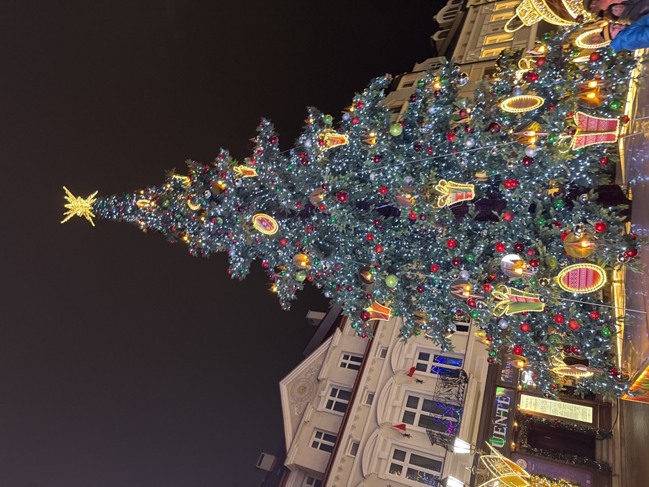 - "A tall, illuminated Christmas tree stands prominently in an urban setting at night" by FM-C1h272, licensed under CC BY 4.0