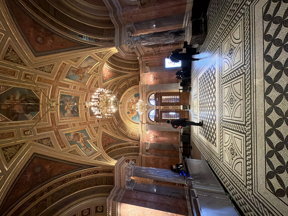 This image depicts the interior of a grand hall within the Hungarian State Opera House in Budapest, Hungary