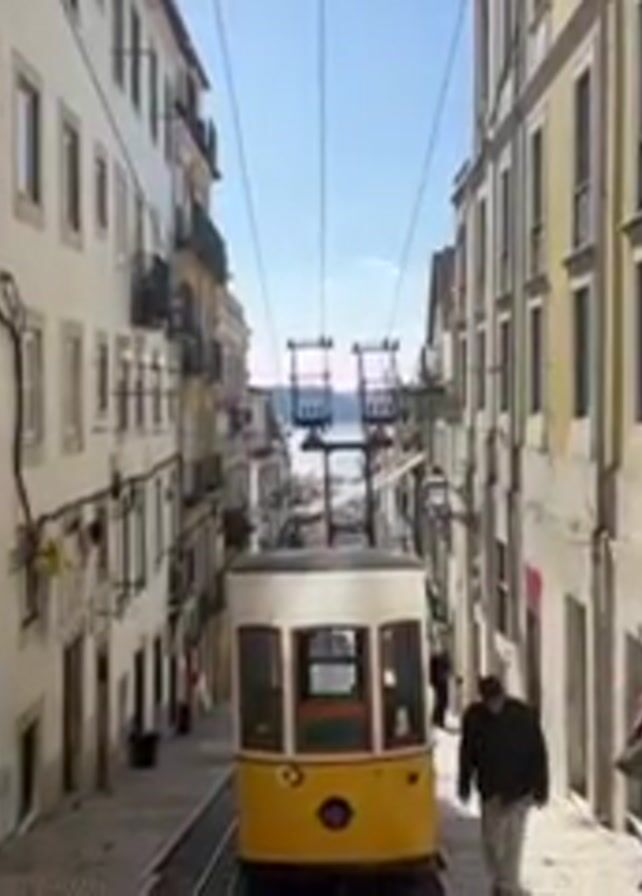 - "A yellow and white funicular is seen traveling down a narrow street in Lisbon, Portugal" by FM-l2qUu2, licensed under CC BY 4.0