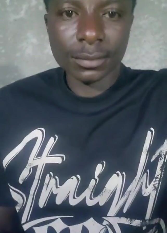 A medium-shot, slightly low-angle video shows a person with short black hair wearing a black t-shirt with the word "Straight" printed in white across the chest