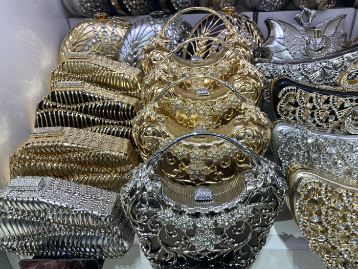 - "The image displays a dense retail arrangement of ornate, jewel-encrusted handbags and clutches, indicative of a luxury goods stall in Istanbul, Turkey, most likely within the Grand Bazaar (Kapalıçarşı)" by FM-QKjH13, licensed under CC BY 4.0