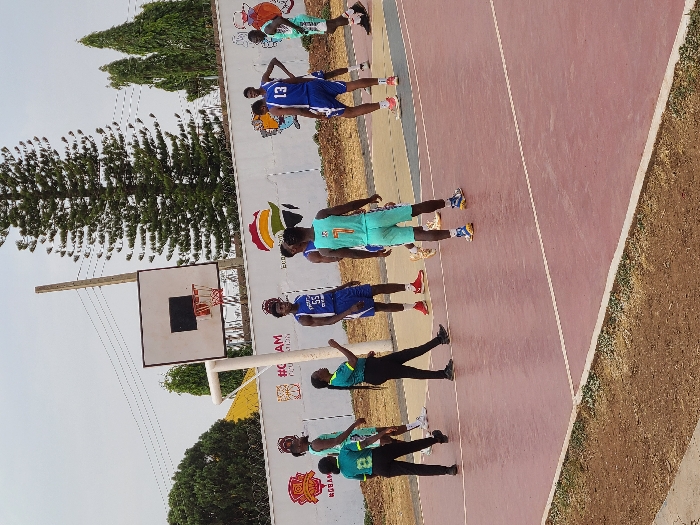 This image depicts an outdoor basketball court in Jos, Nigeria