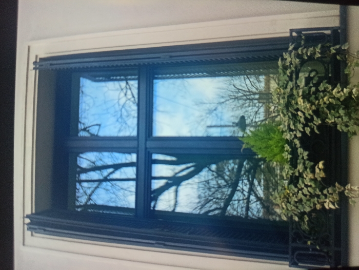 A vertical photograph captures a window on a light-toned building facade in Vozdovac Urban Municipality, Serbia
