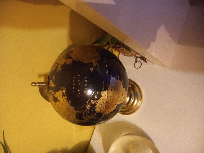 - "A blue globe with gold continents sits on a brass stand" by FM-MtLfs2, licensed under CC BY 4.0