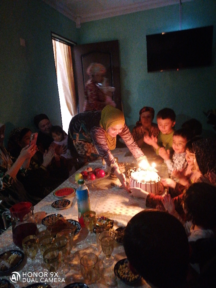 - "An indoor scene in what appears to be a residence in Samarkand, Uzbekistan, depicts a gathering of approximately twelve individuals, predominantly women and children, around a table" by FM-NK6PE2, licensed under CC BY 4.0