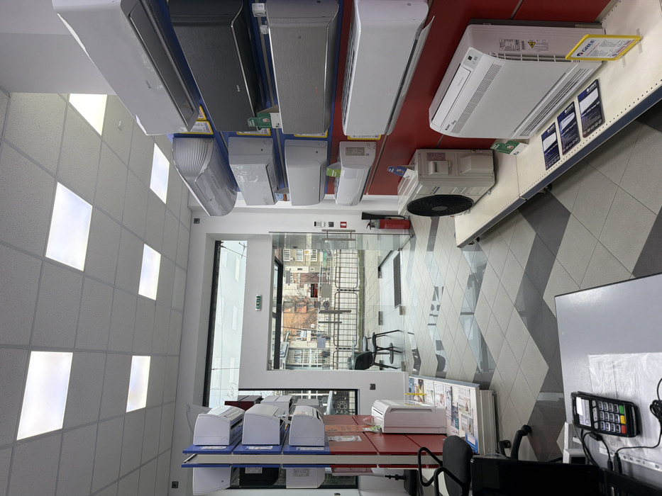 This image depicts the interior of a retail store specializing in air conditioning units, located in Gabrovo, Bulgaria