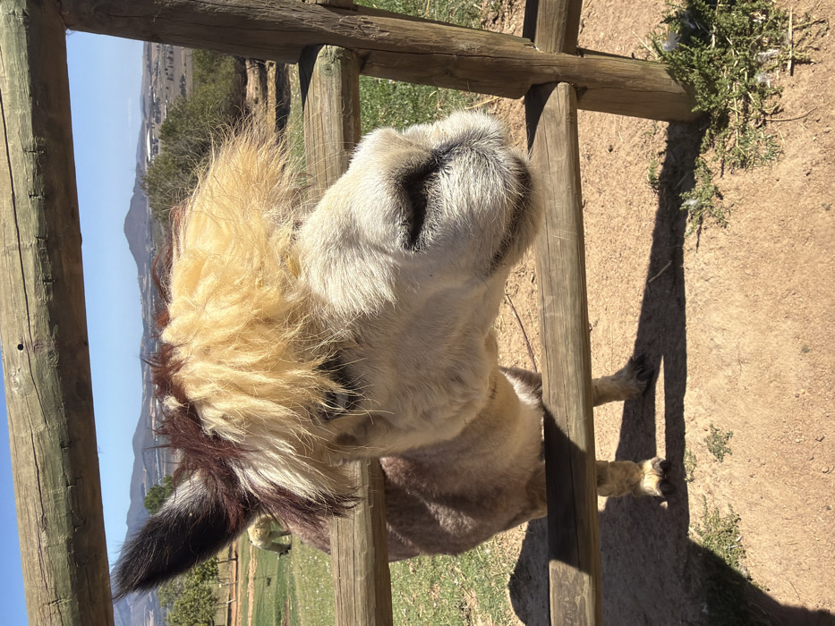 - "A close-up image portrays an alpaca positioned with its head extended through a weathered wooden fence" by FM-tYDL83, licensed under CC BY 4.0