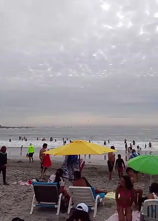 beach crowded with people on an overcast day