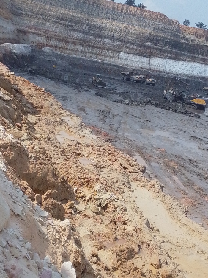 The image presents an active open-pit mining operation located in Hoche, Nigeria