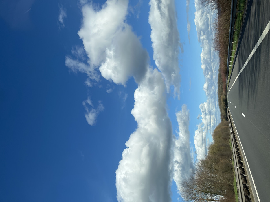 - "The image depicts a multi-lane asphalt highway, likely in the Grevenmacher region of Luxembourg, under a bright blue sky with numerous large, scattered cumulus clouds" by FM-CPrh43, licensed under CC BY 4.0